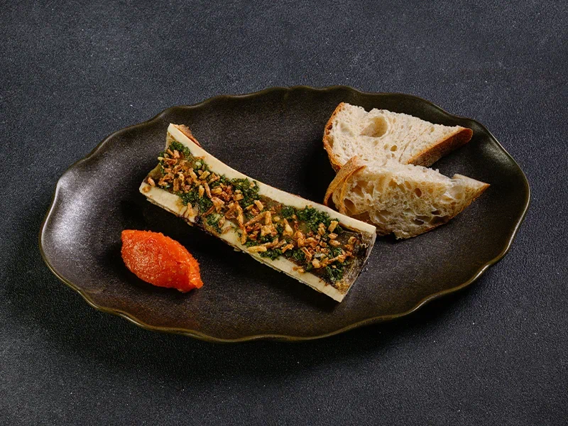 Глазурь на основе мёда, дижонской горчицы, уксуса, маринованных зёрен горчицы. Подаётся с маринованным луком