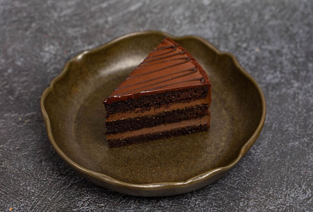 Классические бисквитные шоколадные коржи и насыщенный крем с молочным и темным бельгийским шоколадом, залитые нежным ганашем на молочном шоколаде