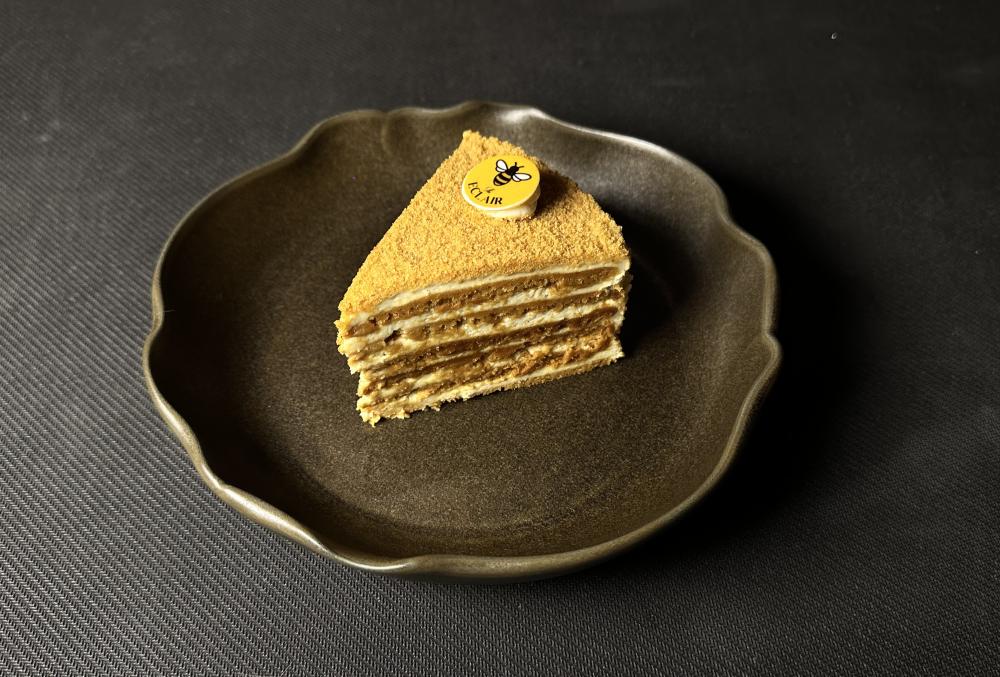 Тонкие и ароматные коржи на башкирском меде прослоены нежнейшим и воздушным кремом на сметане с маскарпоне и семенами натуральной ванили